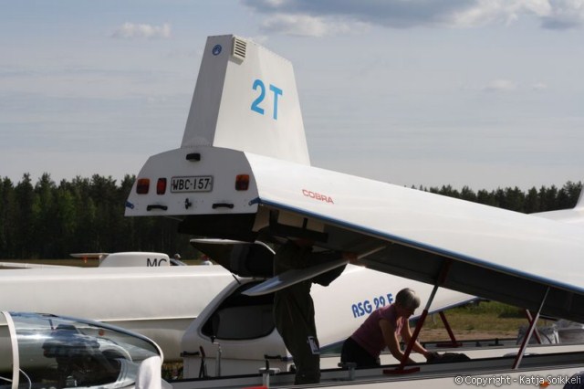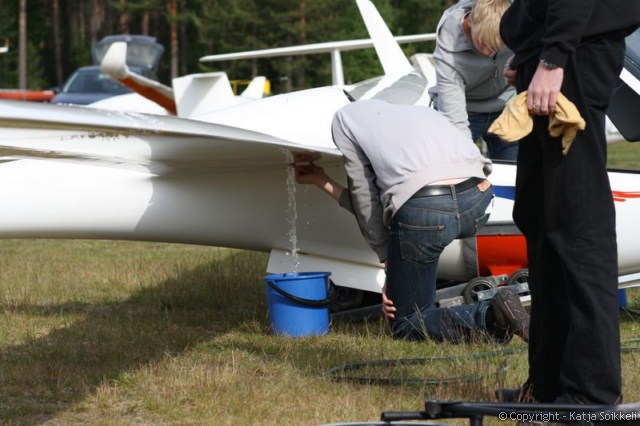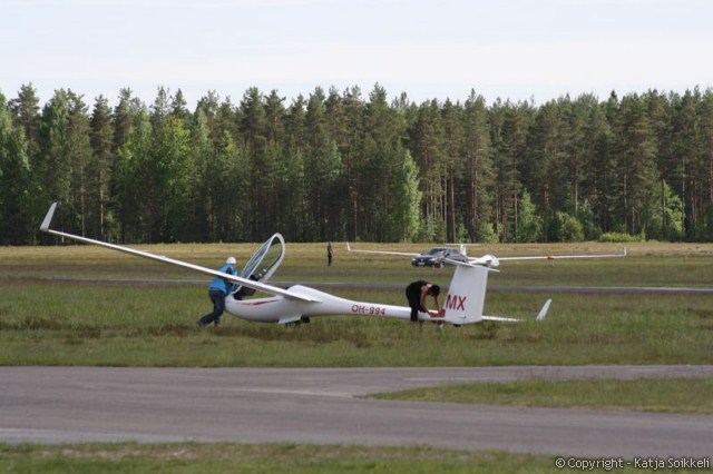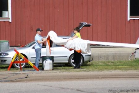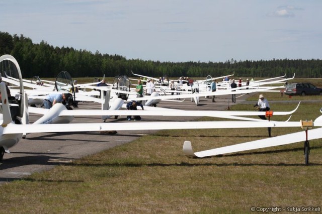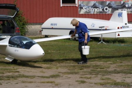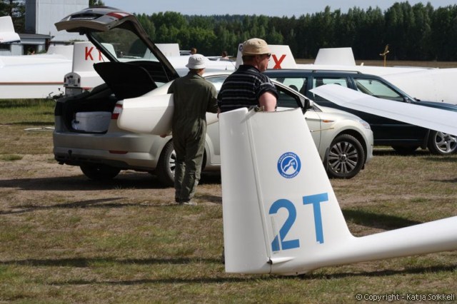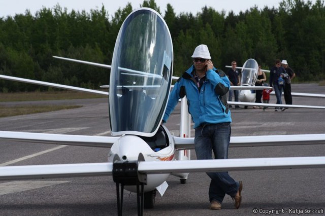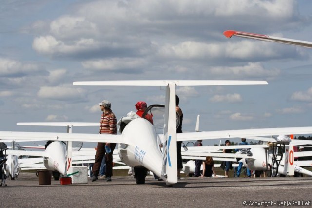 Uusi päivä valkenee lähes aurinkoisena. Pilvet hälvenevät pikkuhiljaa. Koneet on jo gridissä, tänään on käytössä rata 26. Päivän ensimmäiset muutamat kuvat on tankkauspuuhista ja tietysti päivävoittajista. Voiton eilen otti Vakioluokassa Timo Saarnimo, 18m luokassa Antti Lehto ja 15m luokassa Tapio Tourula. Onnea voittajille!
